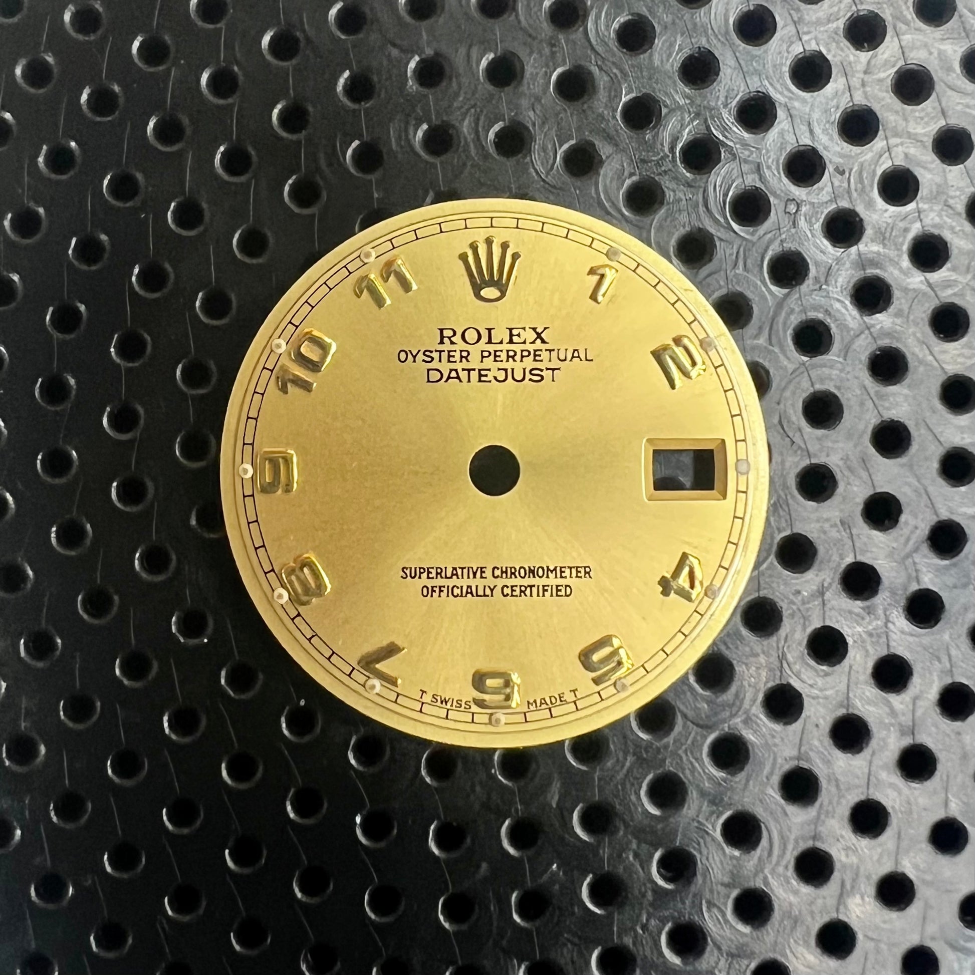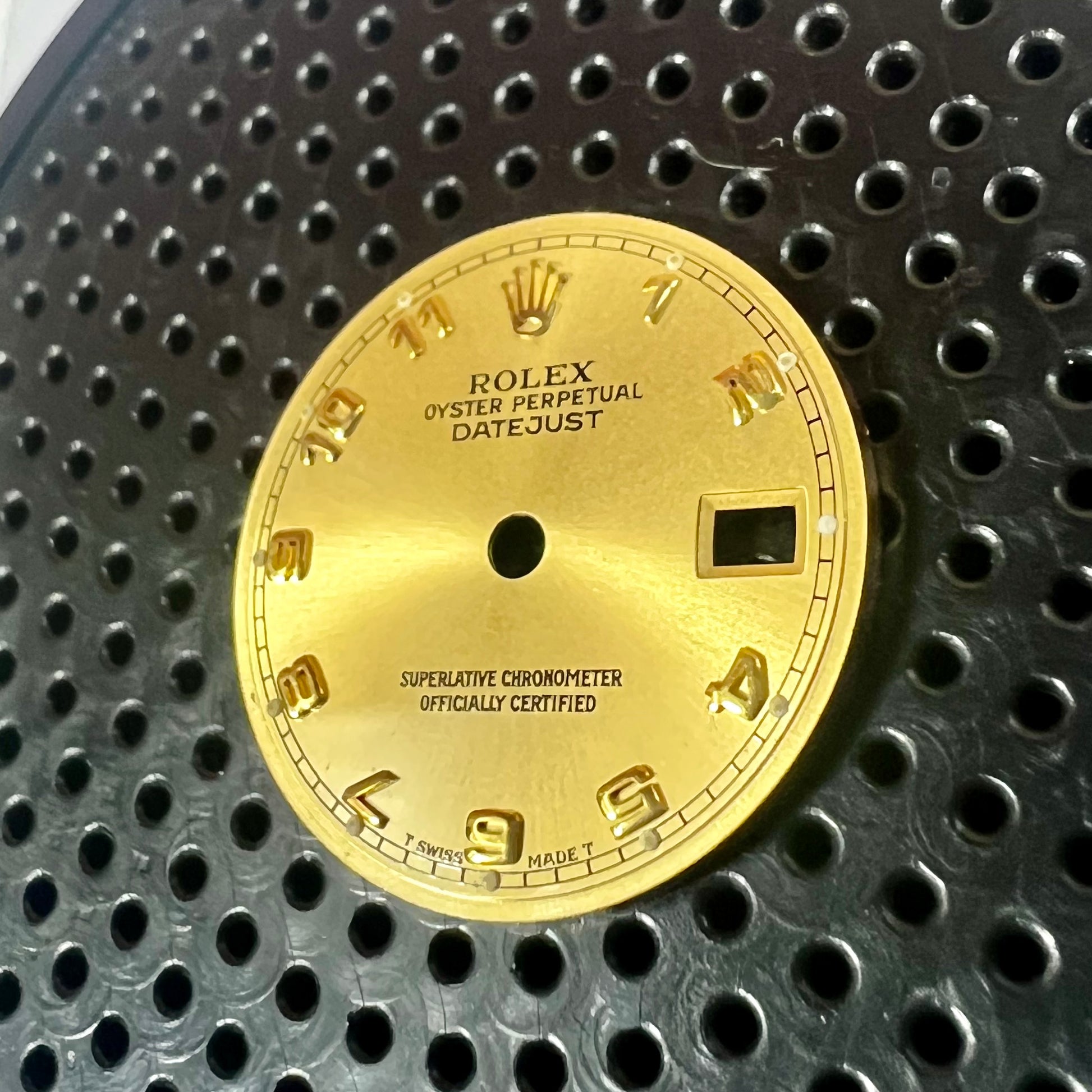 This authentic Rolex dial was removed from an older model (most likely early 69173 or 69178) and is fully compatible with Rolex Datejust 26mm, supporting caliber 2035 and 2135 movements.
