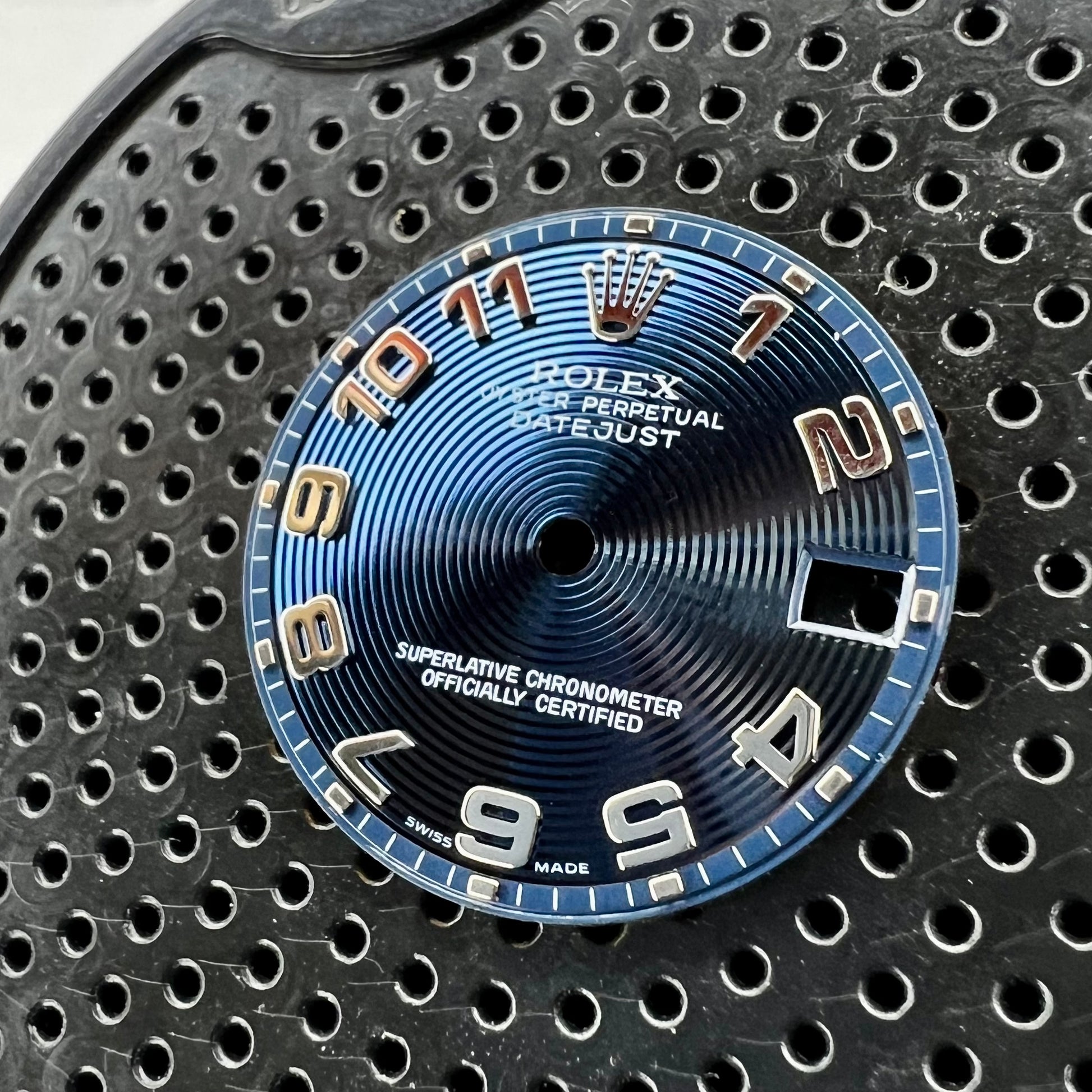 This authentic Rolex dial was removed from a more recent model and is fully compatible with any Rolex Datejust 31mm, supporting both caliber 2035 and 2135 movements.