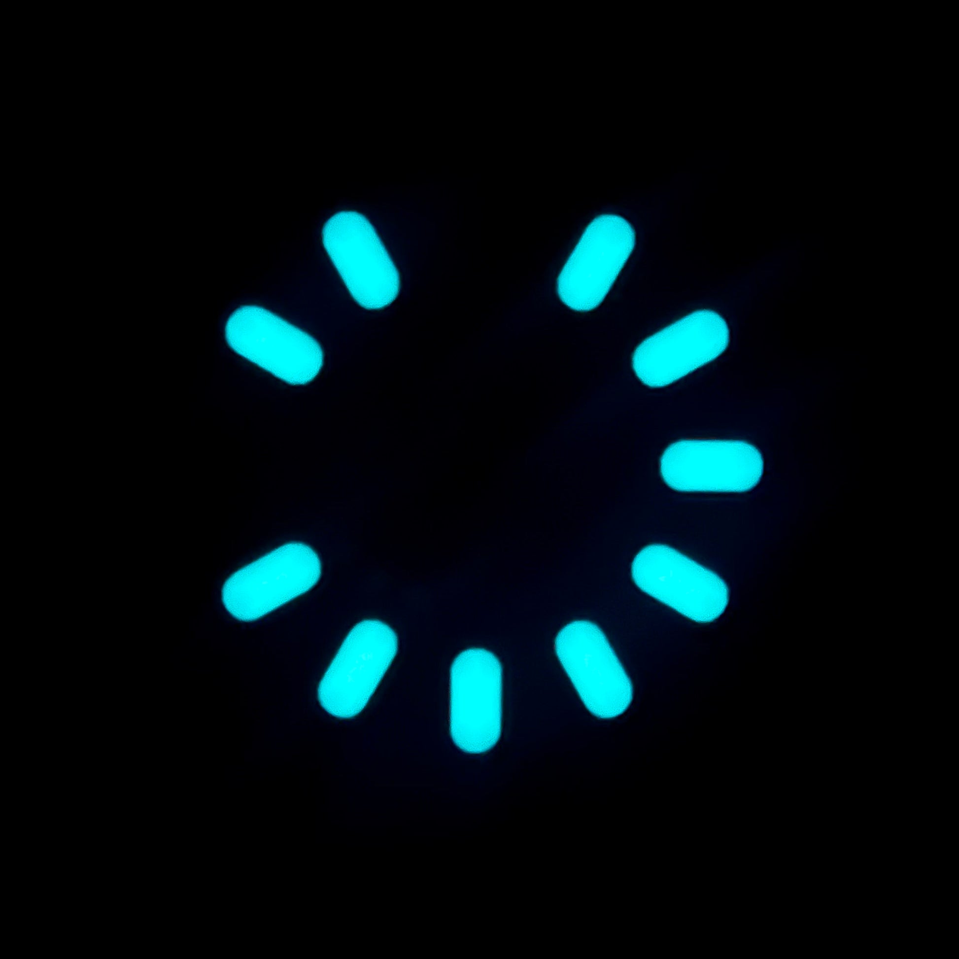 - Silver bar-shaped hour markers with Chromalight inserts for enhanced visibility