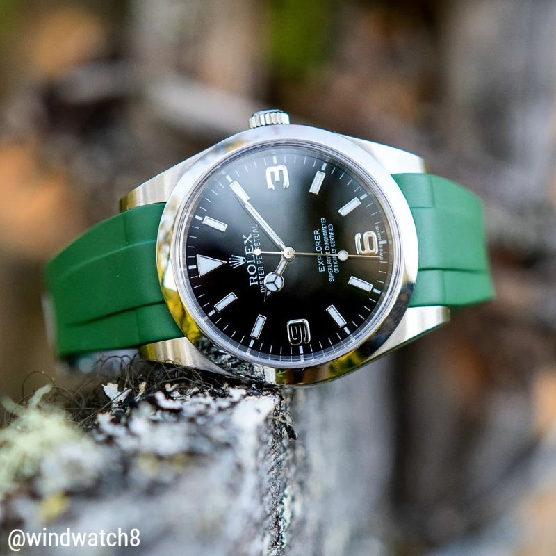 These rubber replacement straps for Rolex watches are soft and durable, giving your Rolex a fresh, sporty look while complimenting its luxury design. This strap has a single notched end, making it compatible with Oyster style clasps.