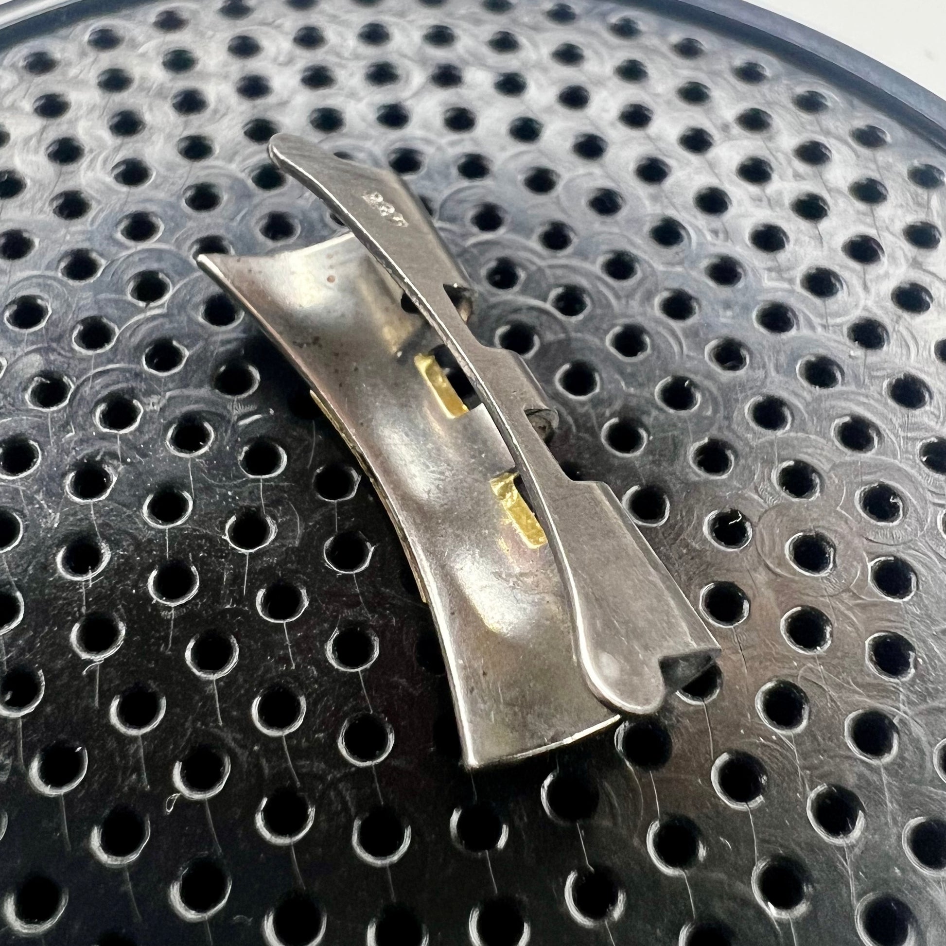 This authentic pair of Rolex 455B end links is for two-tone Rolex Jubilee bracelets, designed to fit 20mm lugs and Rolex Datejust models 1601 and 16013. Made from stainless steel and yellow gold, these end links deliver the precision fit and enduring quality Rolex is known for. They show light wear consistent with age (not polished) but remain in excellent functional condition - ideal for completing or restoring your vintage Rolex bracelet. Please review all photos for details, and feel free to contact us with any questions.
